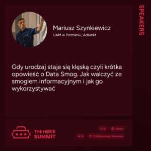 W dn. 13-14.10.2025 na PGE Narodowym w Warszawie odbędzie się kolejna edycja największego w Polsce spotkania specjalistów związanych z sektorem CyberSec. Pierwszego dnia konferencji, w ramach ścieżki Cybercrime, Forensics, OSINT, Incidents Response by e-Detektywi (VoD), wykład poświęcony detekcji, przeciwdziałaniu i wykorzystywaniu zjawiska DATA SMOG wygłosi dr Mariusz Szynkiewicz. W trakcie wystąpienia prezentowane będą wyniki badań prowadzonych w ramach projektu OSNOWA.