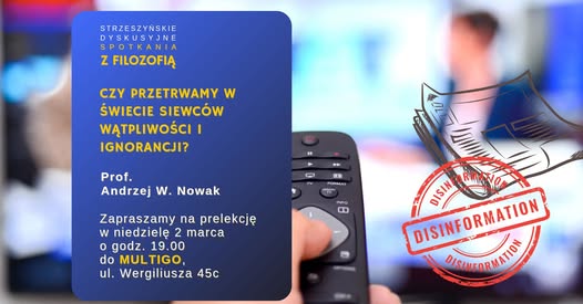 Wystąpienie prof. UAM Czy przetrwamy w świecie siewców wątpliwości i ignorancji? w ramach Strzeszyńskich Dyskusyjnych Spotkań z Filozofią. @ marca 2025, Multigo, Poznań, godz. 19. W wystąpieniu Andrzej W. Nowak analizuje głęboki kryzys epistemologiczny współczesności, gdzie ignorancja przestaje być brakiem…