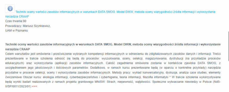 IwE2025 – Techniki oceny wartości zasobów informacyjnych w warunkach DATA SMOG. Model DIKW, metoda oceny wiarygodności źródła informacji i wykorzystanie narzędzia CRAAP